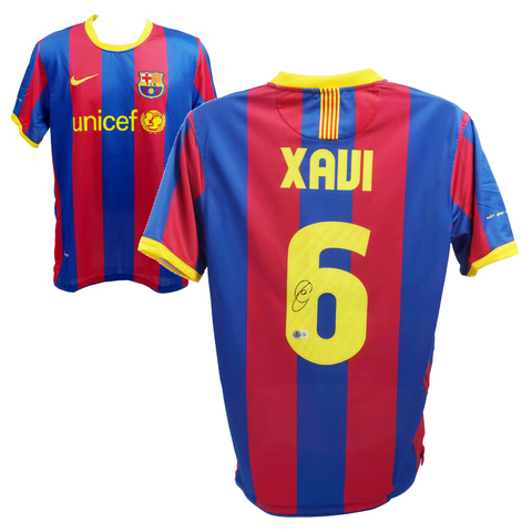 Xavi Hernandez Signed FC Barcelona Home Soccer Jersey #6 with Beckett COA
