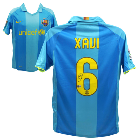 Xavi Hernandez Signed FC Barcelona Away Soccer Jersey #6 with Beckett COA