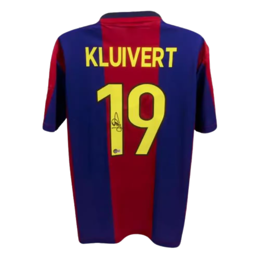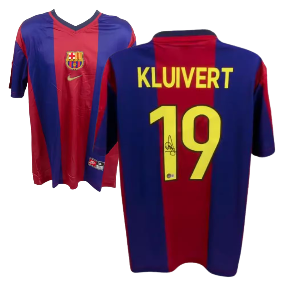 Patrick Kluivert Signed FC Barcelona Home Soccer Jersey #19 with Beckett COA